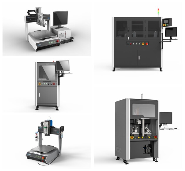 其中在線五軸設(shè)備,為公司新推出產(chǎn)品,具有畫點、線、面、弧、圓、不規(guī)則曲線連續(xù)補(bǔ)間及三軸/五軸聯(lián)動功能;具有影像自動靶標(biāo)定 位,涂膠路徑位置顯示和追蹤功能;具有Mark點影象自動對位和Z軸高度探測功能;依制程需要,還可加裝真空清洗、自動對針、高度檢測、膠量檢測(缺膠報警)、3D線激光膠線檢測、3D線激光膠路引導(dǎo)系統(tǒng)等功能……