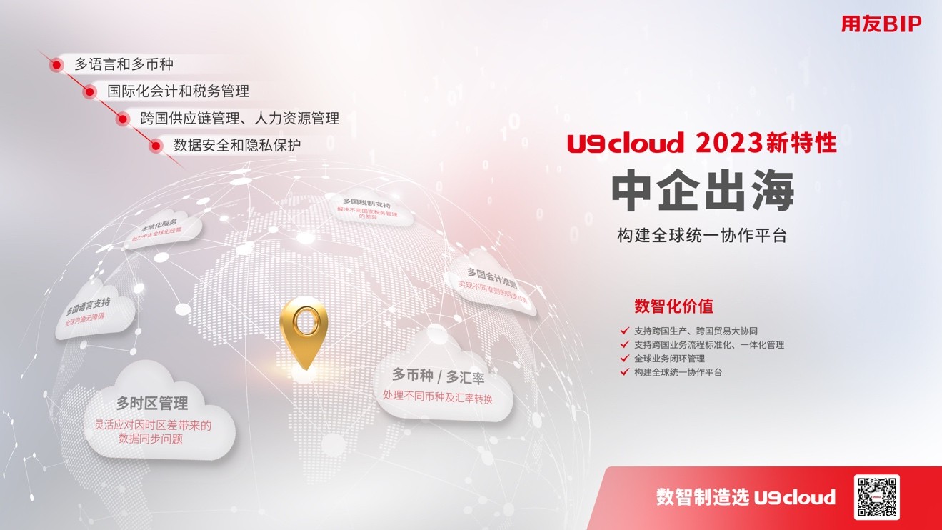 實際上,新發(fā)版的U9 cloud還重點強化了六大特性:數(shù)據(jù)驅(qū)動、行業(yè)深耕、智能工廠、精細(xì)管控、中企出海、隨需應(yīng)變。其中隨著經(jīng)濟形勢的變化,中企出海無疑成了新的熱點。