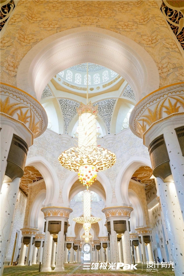 三雄極光照明學(xué)院“設(shè)計有光·亞洲設(shè)計師迪拜對話”游學(xué)團來到阿聯(lián)酋最 大的清真寺——謝赫扎伊德清真寺(sheikhzayed Grand Mosque),探秘穆斯林世界。由希臘漢白玉包裹形成的建筑群,莊嚴、肅穆且典雅。繁復(fù)精美的細節(jié)裝飾隨處可見,工藝精湛,極盡奢華,給予每一位到訪者美學(xué)震撼。