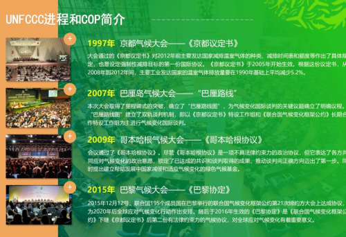 聯(lián)合國(guó)氣候變化會(huì)議是在《聯(lián)合國(guó)氣候變化框架公約》(UNFCCC)框架下每年舉行的會(huì)議。會(huì)議評(píng)估應(yīng)對(duì)氣候變化的進(jìn)展,并從20世紀(jì)90年代中期開始討論《京都議定書》,確立發(fā)達(dá)國(guó)家減少溫室氣體排放的法律約束性義務(wù)。