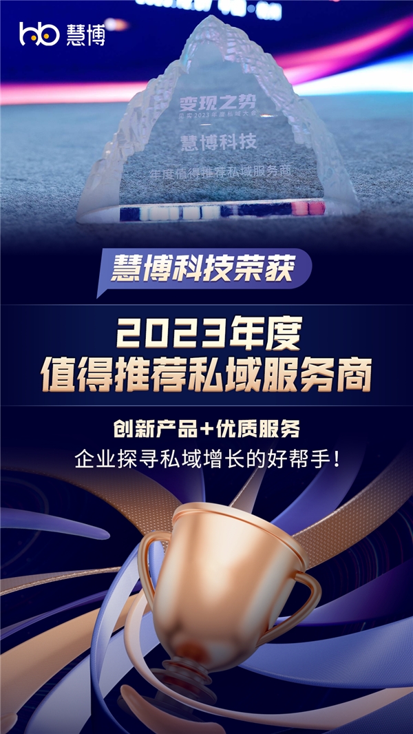 慧博科技榮獲「2023年度值得推薦私域服務(wù)商」獎,不僅是對慧博科技過去一年在私域運營領(lǐng)域的努力和成就的肯定,也是對慧博科技未來發(fā)展的鼓勵和支持。