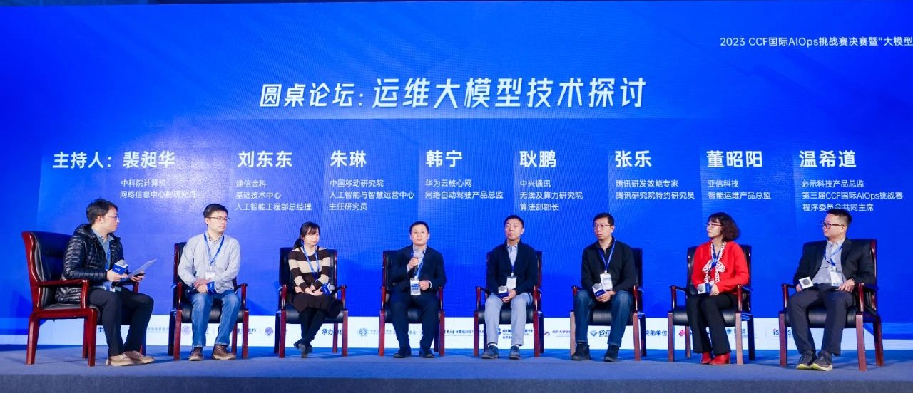 圓桌論壇一“運維大模型技術探討”,由中科院計算機網絡信息中心副研究員裴昶華主持,建信金融科技有限責任公司基礎技術中心人工智能工程部總經理劉東東、中國移動研究院人工智能與智慧運營中心主任研究員朱琳、華為云核心網網絡自動駕駛產品總監(jiān)韓寧、中興通訊無線及算力研究院算法部部長耿鵬、騰訊研發(fā)效能專家、騰訊研究院特約研究員張樂、亞信科技智能運維產品總監(jiān)董昭陽、必示科技產品總監(jiān)溫希道共同參與,圍繞訓練運維大語言模型、指標大模型、日志大模型的必要性,幻覺在實際場景中的影響及解決方案,大模型在AIOps的終極形態(tài)等問題,闡述了各自的觀點。