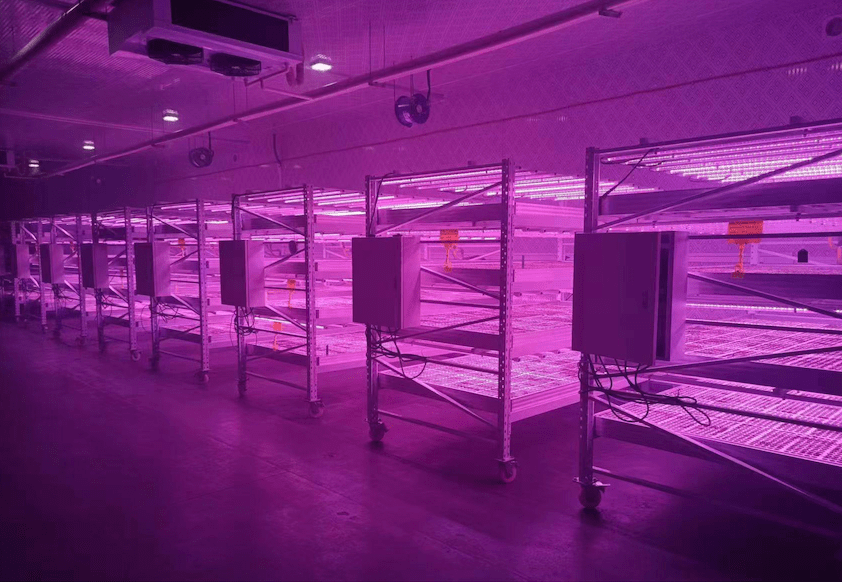 在項目現(xiàn)場,約300平米的封閉式室內(nèi)空間里,布置了25套三思可變光譜立體育苗系統(tǒng)Vertical X及配套的溫控設備、加濕設備、水肥一體化設備、通風設備及相關的傳感器、控制終端等,組成了一套小型全人工氣候型育苗植物工廠。