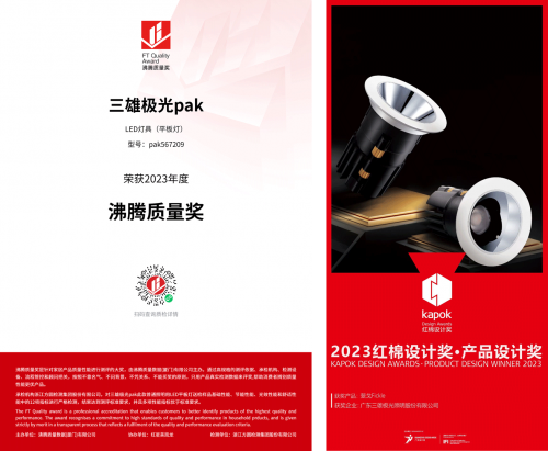 卓越的產(chǎn)品品質(zhì)、穩(wěn)定的產(chǎn)品交付能力及專業(yè)的整體照明方案服務(wù)力是保持行業(yè)領(lǐng)先位置的關(guān)鍵。三雄極光不斷推動產(chǎn)品迭代更新,獲得客戶好評的同時斬獲“沸騰質(zhì)量獎”、“舒適風(fēng)扇燈獎”、“2023年度紅棉設(shè)計獎·產(chǎn)品設(shè)計獎”等榮譽。嚴(yán)格規(guī)范的生產(chǎn)運營管理和質(zhì)量控制體系的優(yōu)勢確保產(chǎn)品品質(zhì)不斷提升,為企業(yè)可持續(xù)發(fā)展奠定更好的基礎(chǔ)。