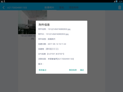 SW-LIMS支持對(duì)計(jì)量現(xiàn)場(chǎng)業(yè)務(wù)的附件管理,如:SW-LIMS可以對(duì)現(xiàn)場(chǎng)檢定校準(zhǔn)過(guò)程中產(chǎn)生的各類項(xiàng)目附件、簽名附件、現(xiàn)場(chǎng)照片、測(cè)點(diǎn)示意圖附件進(jìn)行統(tǒng)一管理,同時(shí)SW-LIMS可實(shí)現(xiàn)修改名稱、添加備注管理。