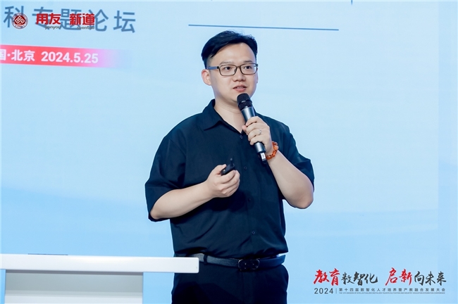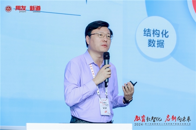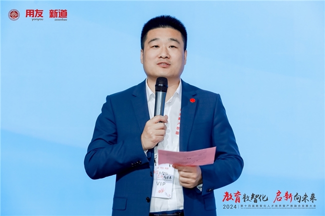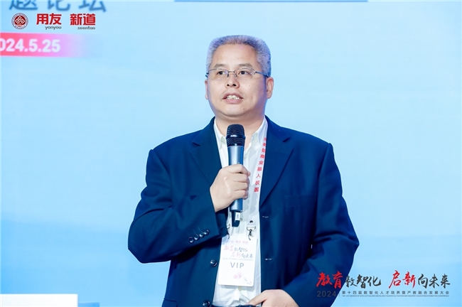 新道科技股份有限公司新工科事業(yè)部副經(jīng)理、IT 領(lǐng)域?qū)<胰斡莱贪l(fā)表題為“產(chǎn)業(yè)案例實(shí)訓(xùn)實(shí)踐——大數(shù)據(jù)專業(yè)從基礎(chǔ)實(shí)驗(yàn)實(shí)訓(xùn)到產(chǎn)業(yè)案例綜合實(shí)訓(xùn)轉(zhuǎn)型升級(jí)”的主題演講。他在演講中圍繞大數(shù)據(jù)專業(yè)實(shí)驗(yàn)實(shí)訓(xùn)的轉(zhuǎn)型升級(jí)展開,介紹了時(shí)代背景、現(xiàn)狀、轉(zhuǎn)型升級(jí)路徑及未來展望。他強(qiáng)調(diào),在政策推動(dòng)下,大數(shù)據(jù)產(chǎn)業(yè)迅速發(fā)展,實(shí)驗(yàn)實(shí)訓(xùn)需緊跟產(chǎn)業(yè)需求,通過教學(xué)資源、教學(xué)方式和內(nèi)容的更新,提升教育質(zhì)量,培養(yǎng)復(fù)合型人才,助力數(shù)字化轉(zhuǎn)型。