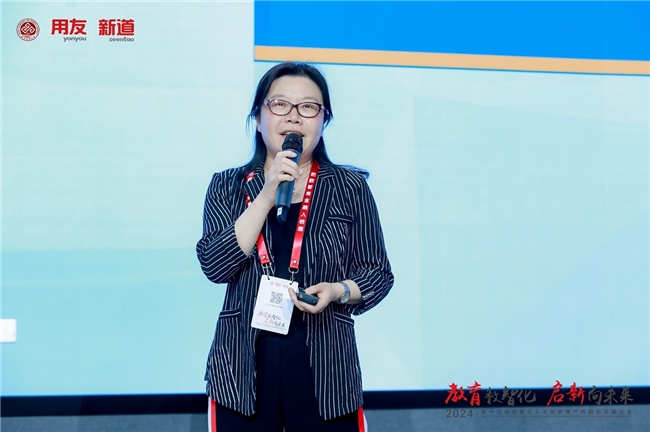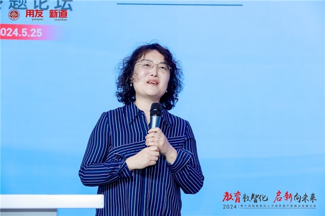 北方工業(yè)大學(xué)教務(wù)處副處長(zhǎng)、數(shù)字產(chǎn)業(yè)學(xué)院副院長(zhǎng)徐繼寧發(fā)表題為“數(shù)智應(yīng)用‘高素質(zhì)應(yīng)用型’人才培養(yǎng)——數(shù)字產(chǎn)業(yè)學(xué)院建設(shè)探索”的主題演講。她介紹,北方工業(yè)大學(xué)“數(shù)字產(chǎn)業(yè)學(xué)院”,立足北京數(shù)字技術(shù)的創(chuàng)新策源地,支持學(xué)校高水應(yīng)用型大學(xué)建設(shè),產(chǎn)業(yè)學(xué)院建設(shè)具備4個(gè)基本特征,分別是產(chǎn)業(yè)需求為導(dǎo)向、跨專業(yè)合作為特征、項(xiàng)目制為載體、學(xué)生發(fā)展為中心。在這個(gè)基礎(chǔ)上,“數(shù)字產(chǎn)業(yè)學(xué)院”以云景融合和項(xiàng)目驅(qū)動(dòng)為抓手,攜手用友新道和眾多合作企業(yè),分別在校內(nèi)建了校企聯(lián)合場(chǎng)景化實(shí)驗(yàn)室,并開展產(chǎn)教融合項(xiàng)目工程實(shí)踐,在產(chǎn)科教融合和數(shù)字化轉(zhuǎn)型雙輪驅(qū)動(dòng)下,為社會(huì)培養(yǎng)未來能夠引領(lǐng)或服務(wù)產(chǎn)業(yè)數(shù)字化轉(zhuǎn)型的高素質(zhì)應(yīng)用型人才。