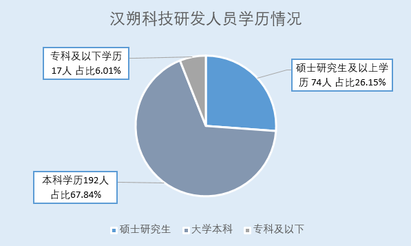 截至2024年6月30日,漢朔科技共有研發(fā)人員283人,占總?cè)藬?shù)的比例為31.76%。其中,碩士研究生及以上學(xué)歷研發(fā)人員占比26.15%,本科學(xué)歷研發(fā)人員占比67.84%。