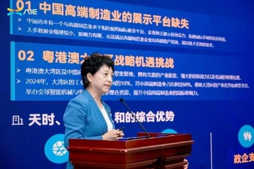 劉英秘書長(zhǎng)對(duì)博覽會(huì)進(jìn)行了全面推介。她表示,AIE的誕生源于中國(guó)高端制造業(yè)的崛起和粵港澳大灣區(qū)在全球科技版圖中日益重要的地位(科技集群創(chuàng)新指數(shù)連續(xù)五年全球第二)。本屆博覽會(huì)以“灣區(qū)智造·全球共享”為主題,旨在搭建中國(guó)與世界高質(zhì)量貿(mào)易的國(guó)際交流平臺(tái),聚合中國(guó)高質(zhì)量企業(yè)集體出海。博覽會(huì)努力目標(biāo)為:對(duì)標(biāo)國(guó)際三大品牌展會(huì),匯聚全球頂尖企業(yè)首發(fā)新品,展示未來(lái)十年尖端科技;打造“思想風(fēng)暴眼”,邀請(qǐng)全球頂尖智庫(kù)專家、企業(yè)家共議前沿趨勢(shì);構(gòu)建“生態(tài)加速器”,破除壁壘,催化跨國(guó)合作;成為“政策風(fēng)向標(biāo)”,發(fā)布解讀最新產(chǎn)業(yè)政策。