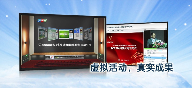 國(guó)內(nèi)最好的虛擬活動(dòng)提供商來自于新興的北京展視互動(dòng)科技有限公司(www.gensee.com),它專注于構(gòu)建全球領(lǐng)先的新一代多媒體虛擬活動(dòng)平臺(tái),覆蓋的技術(shù)領(lǐng)域和核心技術(shù)包括了“最適合”中國(guó)企業(yè)和網(wǎng)民需求的簡(jiǎn)單易用的產(chǎn)品和大規(guī)模部署。Gensee運(yùn)營(yíng)的服務(wù)包括網(wǎng)絡(luò)市場(chǎng)活動(dòng),網(wǎng)絡(luò)教育和培訓(xùn)活動(dòng),企業(yè)虛擬大會(huì),企業(yè)人才招聘活動(dòng),線上虛擬展會(huì),同行業(yè)社會(huì)化交流互動(dòng)網(wǎng)絡(luò)等。把豐富的富媒體內(nèi)容,通過實(shí)時(shí)互動(dòng)方式,在網(wǎng)上建立人際網(wǎng)絡(luò)和商務(wù)平臺(tái),帶來全新的體驗(yàn)和真實(shí)的效果。
