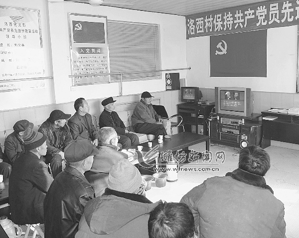 壽光市洛西村黨員集體收看黨員干部現(xiàn)代遠(yuǎn)程教育節(jié)目。