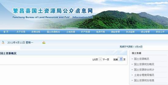 據(jù)王先生介紹,自己是浙江的一名企業(yè)家,在朋友的介紹下,準備今年在繁昌縣進行項目投資。為了解該縣土地有關(guān)使用詳情,他登陸了繁昌縣國土局公共信息網(wǎng)站(http://www.fcgtj.gov.cn/Home/index.aspx)查看。令他相當意外的是,該網(wǎng)站許多內(nèi)容都是空白。