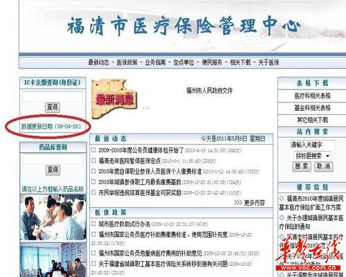 該網(wǎng)友提供的網(wǎng)頁(yè)截圖顯示,在福清市醫(yī)療保險(xiǎn)管理中心網(wǎng)站左上角的“IC卡余額查詢(xún)”一欄中,數(shù)據(jù)更新日期赫然寫(xiě)著“08-04-28”。
