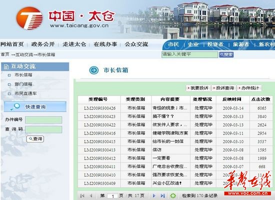 “如果前臺(tái)不顯示,其他網(wǎng)友誤解該欄目停止更新的話怎么辦?”對(duì)于這個(gè)眾多網(wǎng)友關(guān)心的問題,該負(fù)責(zé)人表示,太倉市市政府網(wǎng)“市長信箱”欄目現(xiàn)在正在嘗試做一些改變,比如將市民來信中沒有要求“保密”的部分信件及時(shí)更新公布在網(wǎng)頁上。而目前,所有在“市長信箱”留言的市民都將自動(dòng)獲得一個(gè)編碼,市民可以在該欄目中查詢區(qū)輸入編碼,之后便可得知自己的問題是否得到處理及回復(fù)。