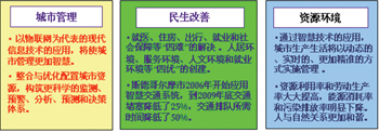 寧波市信息產(chǎn)業(yè)局有關(guān)人士這樣描繪智慧城市;從本質(zhì)上講,智慧城市就是將人的智慧和信息化、網(wǎng)絡(luò)化、智能化緊密結(jié)合起來,更好地發(fā)現(xiàn)城市運(yùn)轉(zhuǎn)和城市發(fā)展中的問題,并更好地予以解決。比如,建設(shè)出租車智能服務(wù)管理系統(tǒng)、數(shù)字公路系統(tǒng)等智慧交通系統(tǒng)將有效緩解“出行難”、“出行堵”等問題;建設(shè)遠(yuǎn)程醫(yī)療救助系統(tǒng)、遠(yuǎn)程醫(yī)療電子結(jié)算系統(tǒng)等智慧健康保障系統(tǒng)使市民小病不用去醫(yī)院,足不出戶就可以通過網(wǎng)絡(luò)看醫(yī)生;通過智慧化的管理,城市生產(chǎn)生活的能源消耗率和污染排放率可以明顯下降,使我們的城市更加綠色、低碳、高效、美麗。