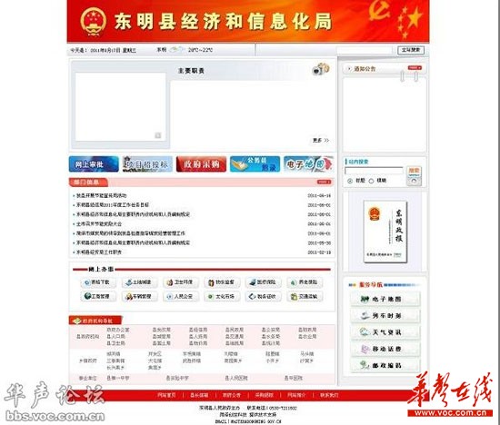 “看看菏澤東明縣的旗下十多個(gè)政府部門的網(wǎng)站都是空白,有的是更新日期是2月份,而且還是一樣的模板,真是山寨大王啊。”8月17日,網(wǎng)友“牡丹仙子blog”在華聲論壇發(fā)帖質(zhì)疑。