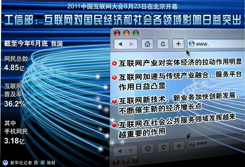 工業(yè)和信息化部部長苗圩說:“互聯(lián)網(wǎng)已成為經(jīng)濟社會運行的重要基礎設施和影響重大的新興媒體,在推動經(jīng)濟社會發(fā)展、豐富人民群眾精神文化生活、促進社會和諧等方面發(fā)揮了積極作用。”