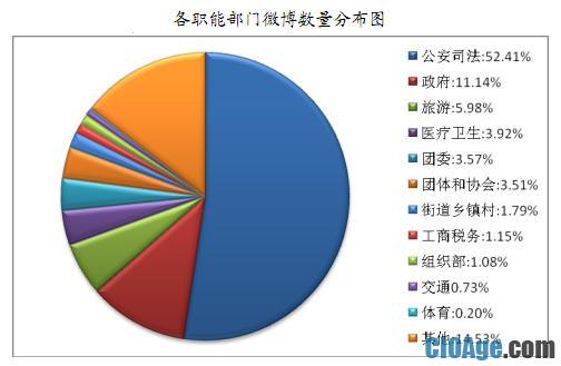 人民網(wǎng)輿情監(jiān)測室今天(8月25日)發(fā)布的《騰訊政務(wù)微博地圖》對在騰訊微博開設(shè)微博政府服務(wù)的1萬多個政府機構(gòu)微博賬號進行了分析,分析表明,在各類政府部門中,公安司法部門微博數(shù)量和活躍度最高,其次是旅游、醫(yī)療衛(wèi)生等機構(gòu)。此外,政府官員開設(shè)微博中,以處級干部最多。