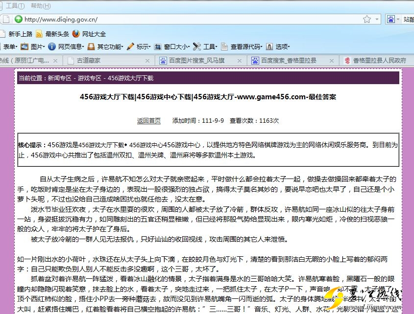 當(dāng)記者打開迪慶州人民政府網(wǎng)站(http://www.diqing.gov.cn/)時(shí)驚訝地發(fā)現(xiàn),該網(wǎng)站首頁“變身”為游戲網(wǎng)站,懷疑被黑客篡改網(wǎng)頁。