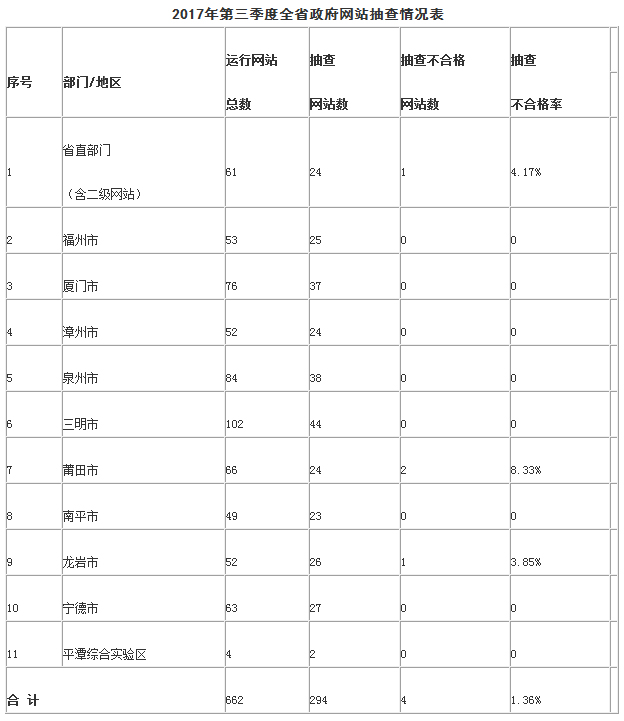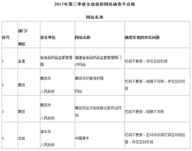福建省人民政府辦公廳關(guān)于2017年第三季度全省政府網(wǎng)站抽查情況的通報
