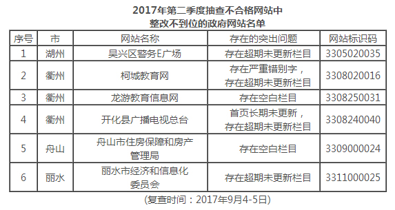 1.2017年第二季度抽查不合格網(wǎng)站中整改不到位的政府網(wǎng)站名單