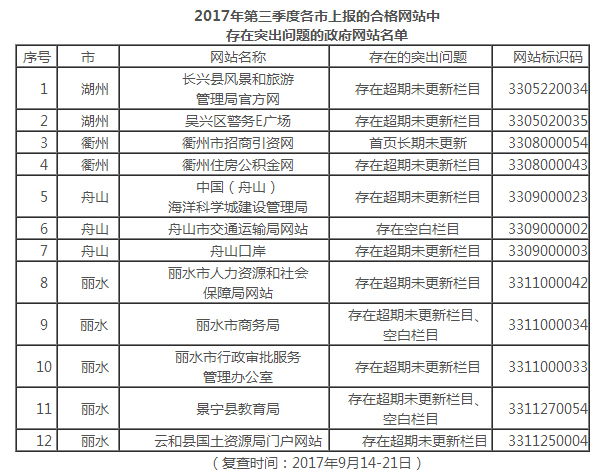 3.2017年第三季度各市上報(bào)的合格網(wǎng)站中存在突出問(wèn)題的政府網(wǎng)站名單