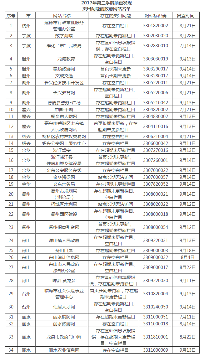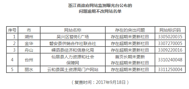 4.浙江省政府網(wǎng)站監(jiān)測(cè)曝光臺(tái)公布的問(wèn)題逾期不改網(wǎng)站名單