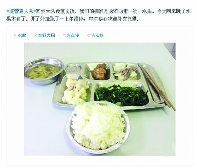 記者注意到,當(dāng)天中午,錢立吃的飯菜、閱讀的書以及練啞鈴的圖片都出現(xiàn)在了微博中,甚至連帶有GPS定位功能的對講機(jī)也被拿出來秀了一把。