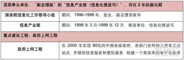 ▲電子政務(wù)起步階段:牽頭單位、重點(diǎn)項(xiàng)目(政府上網(wǎng)工程)