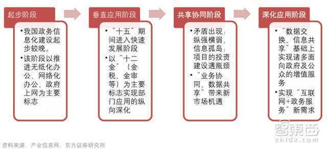 在夯實(shí)信息化基礎(chǔ)、取得階段性成果背景下,電子政務(wù)建設(shè)正由“單項(xiàng)應(yīng)用”向“共享協(xié)同”的階段進(jìn)階。東方證券認(rèn)為在部委職能調(diào)整掃清障礙,政策支持打開(kāi)空間的背景下,千億級(jí)市場(chǎng)當(dāng)前正迎來(lái)自上而下的拐點(diǎn)性變革,2018年電子政務(wù)行業(yè)“新一輪黃金發(fā)展期”的序幕即將拉開(kāi)。
