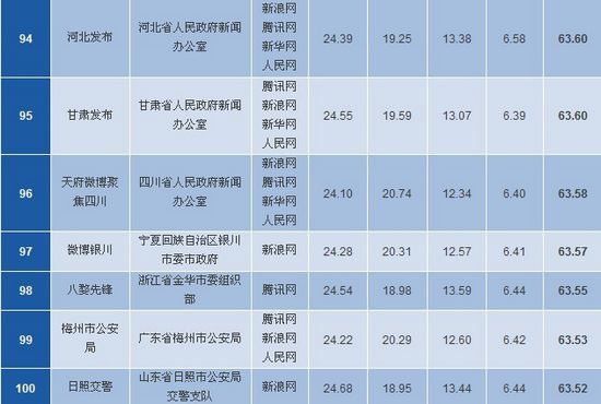 “日照交警”微博位居100名