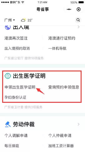 點擊“申領(lǐng)出生醫(yī)學證明”
