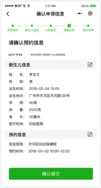 ---預約成功后,去醫(yī)院領(lǐng)取出生醫(yī)學證明,需要出示身份證原件。
