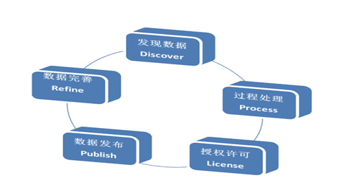 在美國(guó)開(kāi)放數(shù)據(jù)運(yùn)動(dòng)的影響之下,2009年澳大利亞政府積極推廣開(kāi)放數(shù)據(jù)的理念和行動(dòng),將Data。gov。au作為政府信息目錄,使用戶(hù)更簡(jiǎn)便地搜索、瀏覽和利用澳政府國(guó)家、地區(qū)政府的公共數(shù)據(jù)。政府鼓勵(lì)所有用戶(hù)通過(guò)更新工具和應(yīng)用從信息中得到實(shí)惠,包括114個(gè)部門(mén)的1120個(gè)數(shù)據(jù)庫(kù)和10個(gè)應(yīng)用軟件的網(wǎng)站提供數(shù)據(jù)下載,并提供其他數(shù)據(jù)目錄或資源的鏈接。澳大利亞政府?dāng)?shù)據(jù)開(kāi)放的最大特點(diǎn)是將數(shù)據(jù)開(kāi)放流程化(見(jiàn)圖2),將公共數(shù)據(jù)的發(fā)布劃分為5個(gè)階段:發(fā)現(xiàn)數(shù)據(jù)(Discover)——過(guò)程處理(Process)——授權(quán)許可(License)——數(shù)據(jù)發(fā)布(Publish)——數(shù)據(jù)完善(Refine)(見(jiàn)圖2)。