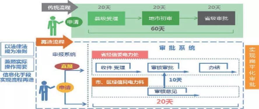 通過流程再造, 縣、市、省分別受理、審核變?yōu)槭≈苯邮芾?。通過一表式填報, 附件從5份精簡為3份, 取消請示文件。辦理時限由原來的60天變?yōu)?0天。實現(xiàn)了全流程網(wǎng)上辦, 數(shù)字證書+郵政服務(wù)實現(xiàn)0跑動。