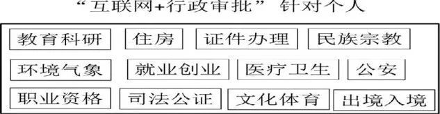 凡是與企業(yè)和個人相關(guān)的審批事項都要推行網(wǎng)上受理、網(wǎng)上辦理、網(wǎng)上反饋?!盎ヂ?lián)網(wǎng)+行政審批”平臺要把一批企業(yè)和老百姓經(jīng)常要辦的一些事項優(yōu)先嵌入網(wǎng)上辦事大廳, 增加辦事人對網(wǎng)上行政審批的認知度和認可度, 擴大宣傳效果。針對個人用戶, 審批內(nèi)容涉及到以下幾個重點領(lǐng)域, 如圖3所示。