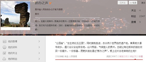 昨日(7月17日)下午,貴州省政府辦公廳官方微博“@黔辦之聲”(微博)在人民微博正式開通上線。