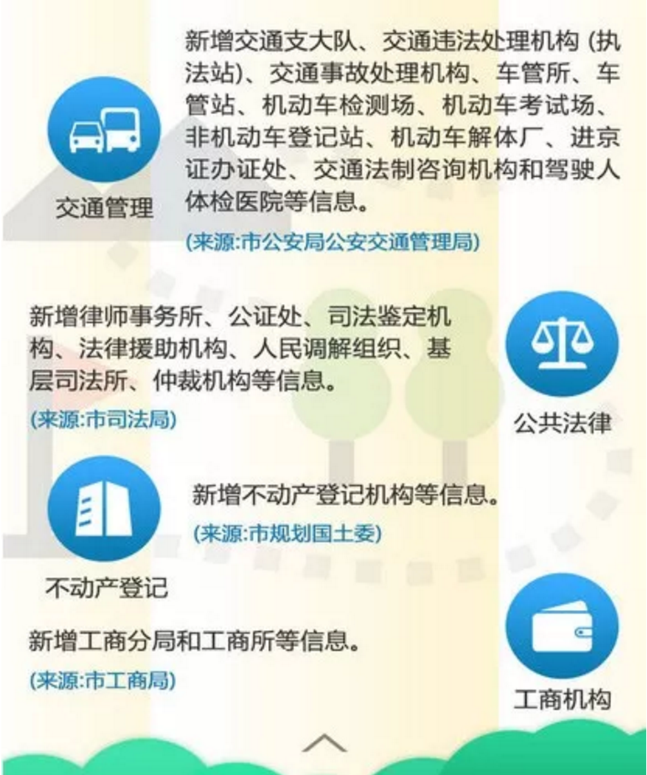 該負責人介紹,在現(xiàn)有的地圖基礎(chǔ)上,今年的地圖內(nèi)容圍繞疏解整治促提升、城市精細化管理、優(yōu)化營商環(huán)境等全市中心工作,系統(tǒng)覆蓋教育、醫(yī)療、民政、社保、交通、企業(yè)稅務(wù)、工商注冊、便民商業(yè)、不動產(chǎn)登記、公共文化服務(wù)、公共法律服務(wù)、政務(wù)服務(wù)等重點民生領(lǐng)域,地圖不僅涉及的行業(yè)進一步增加,點位信息也進一步擴展,查詢內(nèi)容進一步豐富,更加全面反映政府在促進首都高質(zhì)量發(fā)展、加強公共服務(wù)、保障改善民生方面的工作進展和成效。