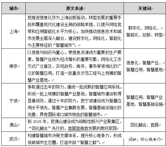 各城市建設(shè)智慧城市戰(zhàn)略目標(biāo)