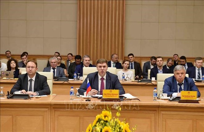 俄羅斯通信與大眾傳媒部副部長(zhǎng)馬莫諾夫一行。圖自越通社