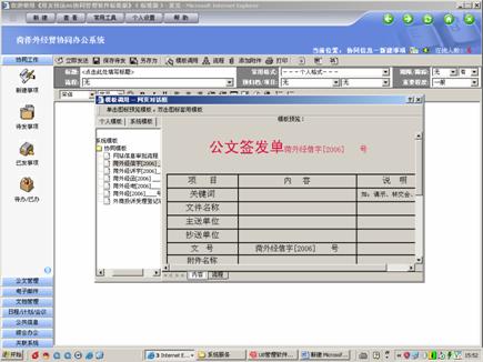 實(shí)現(xiàn)辦公信息自動(dòng)化是我們設(shè)計(jì)和實(shí)施電子政務(wù)應(yīng)用的主要任務(wù)。當(dāng)前外經(jīng)貿(mào)系統(tǒng)工作具體表現(xiàn)在外經(jīng)貿(mào)活動(dòng)多、項(xiàng)目多、出差多、流動(dòng)性大,市縣區(qū)需要聯(lián)系的工作內(nèi)容多、人員少,大多數(shù)同志工作特別繁忙,長期處于超負(fù)荷運(yùn)轉(zhuǎn)狀態(tài),由此造成了各類辦公信息傳遞交流不及時(shí)、信息共享嚴(yán)重不足等問題,影響了整體工作質(zhì)量提高。為此我局有針對性地對辦公自動(dòng)化軟件進(jìn)行篩選,通過比較,于04年10月份最終選擇了用友致遠(yuǎn)A6協(xié)同管理軟件,該軟件具有以下特點(diǎn):