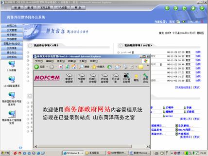 山東省外經(jīng)貿(mào)廳在《山東省外經(jīng)貿(mào)電子政務(wù)建設(shè)的調(diào)研報(bào)告》中指出:菏澤市外經(jīng)貿(mào)局在協(xié)同辦公方面,根據(jù)業(yè)務(wù)需要,有針對性的對辦公平臺(tái)軟件進(jìn)行選型,選擇國內(nèi)成熟的辦公軟件,實(shí)現(xiàn)了局機(jī)關(guān)內(nèi)部的辦公自動(dòng)化,辦公自動(dòng)化系統(tǒng)可以通過局域網(wǎng)登錄、網(wǎng)聯(lián)網(wǎng)登錄、門戶網(wǎng)站登錄三種方式登錄,可以將協(xié)同辦公信息轉(zhuǎn)發(fā)手機(jī)短信,做到隨時(shí)隨地的移動(dòng)辦公。菏澤市外經(jīng)貿(mào)局亦被山東省外經(jīng)貿(mào)廳評為2005年全省市級(jí)信息化先進(jìn)單位。