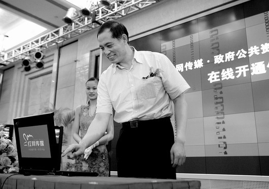副省長(zhǎng)郭開(kāi)朗點(diǎn)擊開(kāi)通鍵盤(pán),紅網(wǎng)傳媒正式開(kāi)通。圖/記者殷建軍