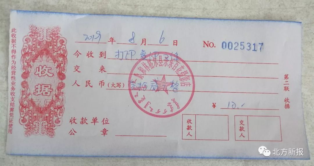 記者問這位工作人員收費標準有依據(jù)嗎?她竟然稱這個服務(wù)窗口是租的,她是打工的,有沒有依據(jù)得問老板。記者索要發(fā)票,這位工作人員說發(fā)票最小的面額是50元,只能開收據(jù)。記者從對方出具的收據(jù)上了解到,這個打印復(fù)印的窗口名叫“和林格爾縣樂樂百花攝影店”。