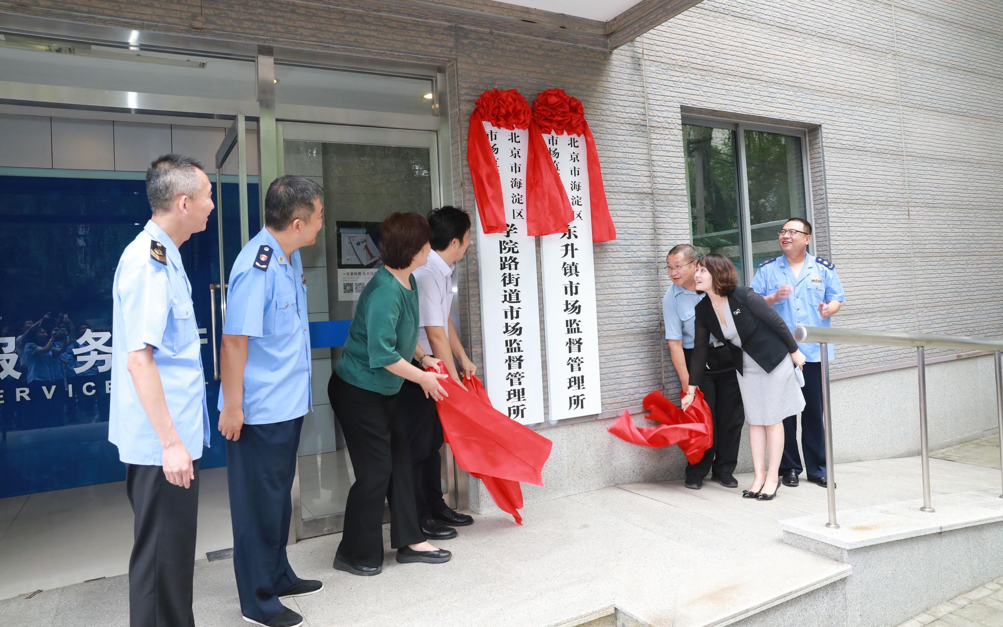 8月22日,海淀區(qū)市場監(jiān)督管理局東升鎮(zhèn)市場監(jiān)管所、學(xué)院路街道市場監(jiān)管所舉行揭牌儀式。海淀區(qū)市場監(jiān)管局供圖