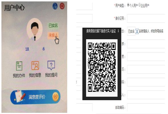 “一體化平臺(tái)”對(duì)用戶賬號(hào)進(jìn)行了新的分級(jí)管理,在原來普通用戶、實(shí)名認(rèn)證用戶兩種用戶的基礎(chǔ)上,新增實(shí)人認(rèn)證用戶。普通用戶、實(shí)名認(rèn)證用戶可在“用戶中心”打開實(shí)人認(rèn)證二維碼,用手機(jī)掃碼進(jìn)行實(shí)人認(rèn)證。該認(rèn)證依托公安部“互聯(lián)網(wǎng)+可信身份認(rèn)證”系統(tǒng),運(yùn)用活體檢測(cè)等技術(shù)實(shí)現(xiàn)賬號(hào)與實(shí)人綁定,進(jìn)一步提升了申請(qǐng)人賬號(hào)的安全性。
