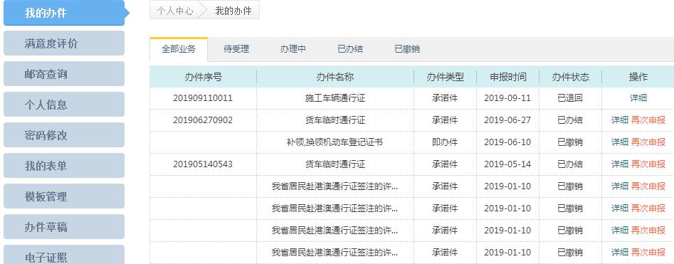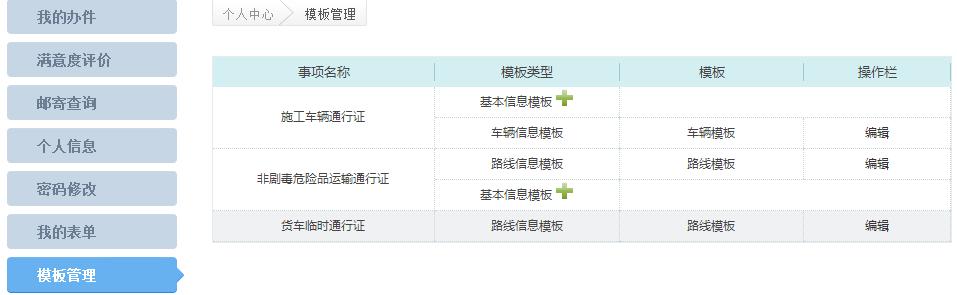 同時(shí),在“用戶中心”中還提供了“我的辦件—再次申報(bào)”和“模板管理”等功能,申請(qǐng)人申請(qǐng)事項(xiàng)時(shí)可調(diào)取歷史辦件信息或“模板信息”,根據(jù)需要稍作修改即可直接完成在線申報(bào),無需再逐項(xiàng)上傳附件等申報(bào)信息。智能化服務(wù)讓企業(yè)、群眾網(wǎng)上操作更簡(jiǎn)便、更高效。