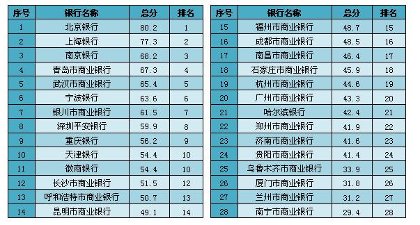 全國城市商業(yè)銀行網(wǎng)站競爭力排名榜單