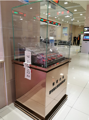 張家口市審批大廳內(nèi)的“原審批公章封存展示柜”見證了政務服務改革的變化。人民網(wǎng) 王仁宏攝