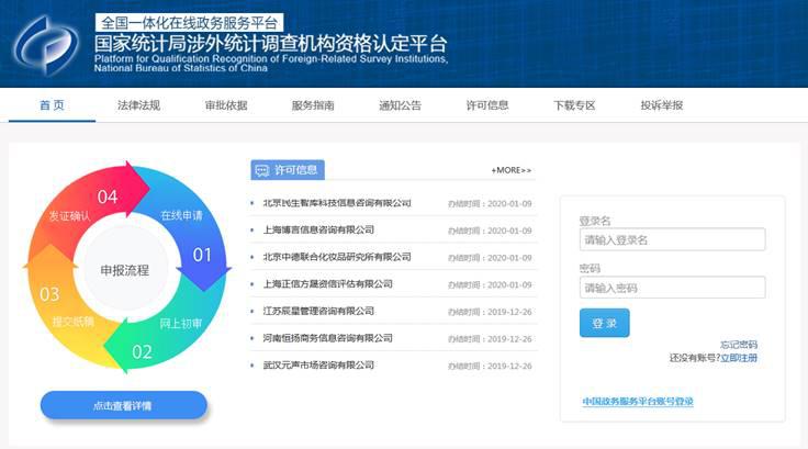 國家統(tǒng)計(jì)局涉外統(tǒng)計(jì)調(diào)查機(jī)構(gòu)資格認(rèn)定平臺(tái)